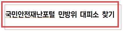 아래를 누르면 국민안전재난포털 민방위 대피소 검색하기 페이지로 이동합니다.