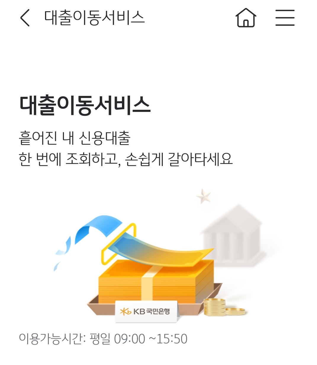 아래는 KB 모바일뱅킹 앱 대출이동 서비스 페이지에서 가져온 건데요.