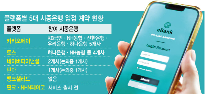 카카오페이 - KB국민은행·NH농협은행·신한은행·우리은행·하나은행 5대 시중은행을 포함