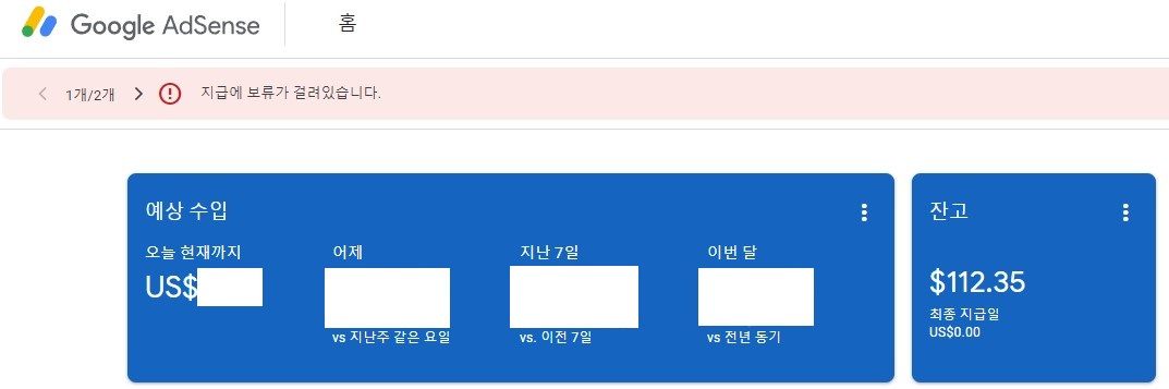 그리고 드디어 11월 30일 잔고가 $ 100 달러를 넘어서 지급 계좌 정보를 입력하게 되었네요~!! ^^
