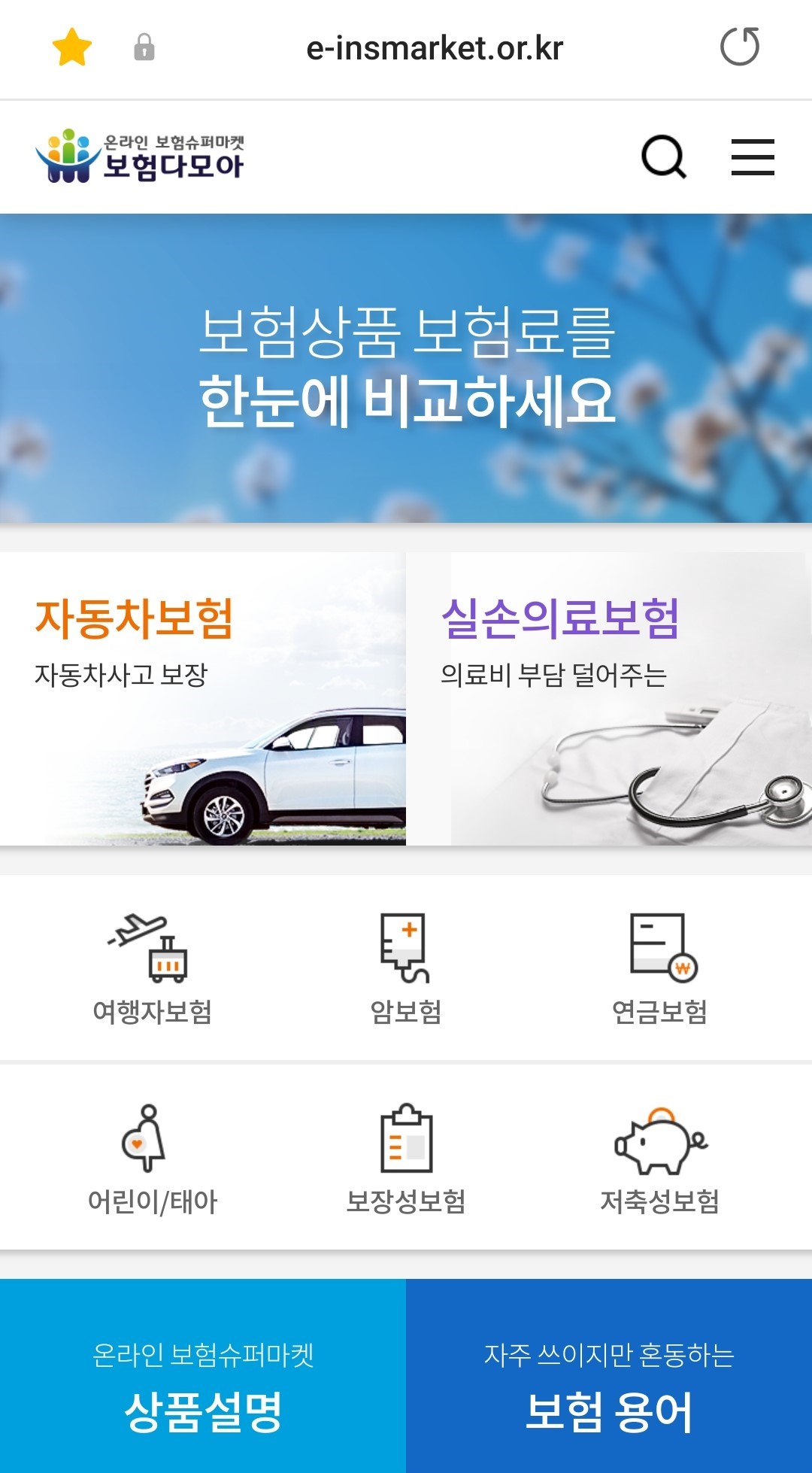 아래를 누르시면 "보험다모아" 사이트로 연결됩니다.